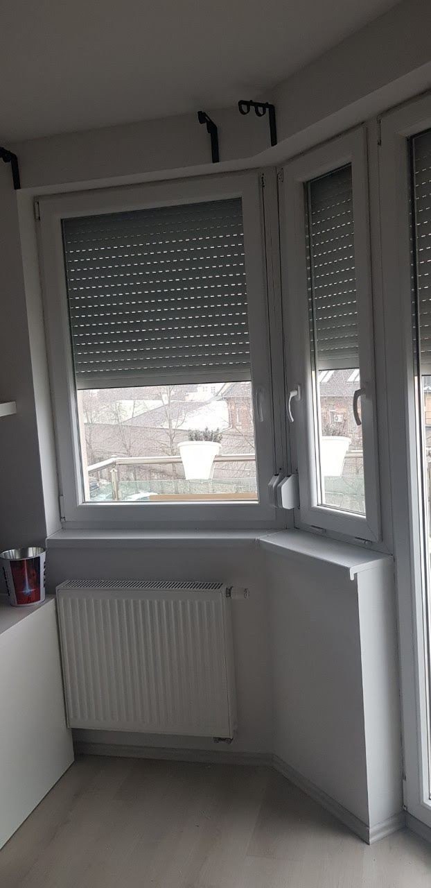 Ennél a 14. kerületi lakásnál ráadásul speciális megoldásokat kellett alkalmaznunk a redőnyök hatékony szereléséhez, de a speciális sarokmegoldással igazán esztétikus kialakítást értünk el, sőt mi több, a mellékelt galéria tanúsítja, hogy milyen homogén telepíthetőség jellemzi az ablakszárnyanként szerelt árnyékolókat is.